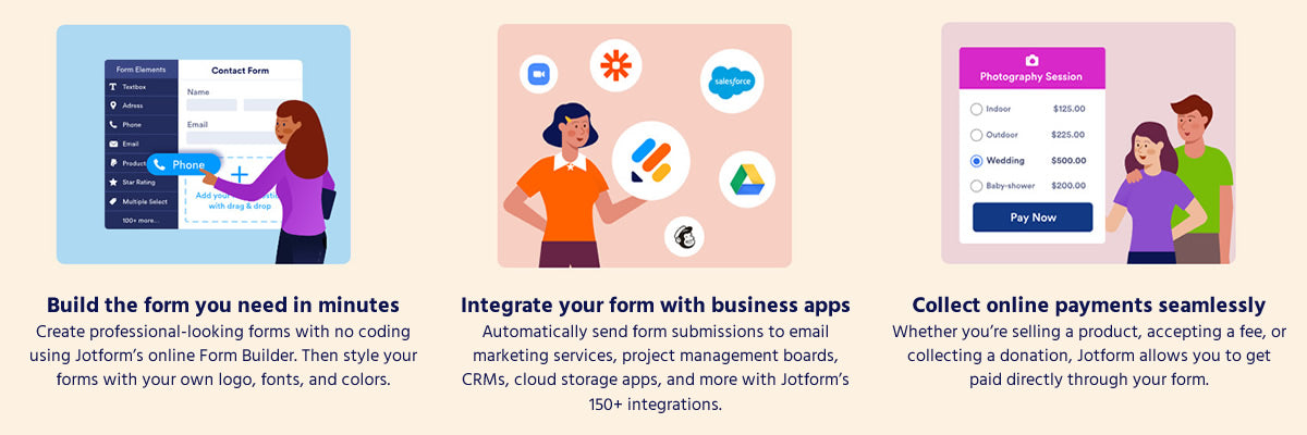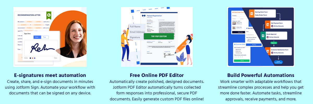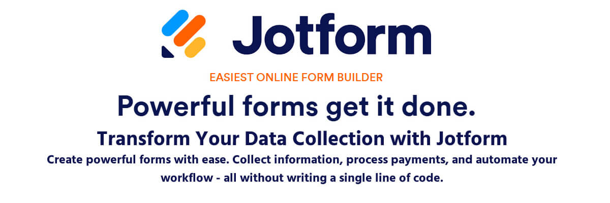 We believe that the right forms make all the difference. Go from busywork to less work with powerful forms that use conditional logic, accept payments, generate reports and automate workflows. Jotform is a powerful online form builder that makes it easy to create robust forms and collect important data. Trusted by over 30M users worldwide, such as Non-Profit Organizations, K-12 Schools and Colleges, and Businesses of all sizes, Jotform is a gateway to gathering better information to propel your business.
