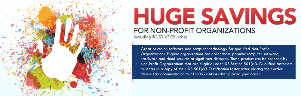 As an authorized non-profit software reseller, we specialize in finding significant software discounts for churches, museums, libraries, and all other IRS 501(c)3 non-profits. We look forward to welcoming you as a new customer, and helping your organization save on your computer software needs.