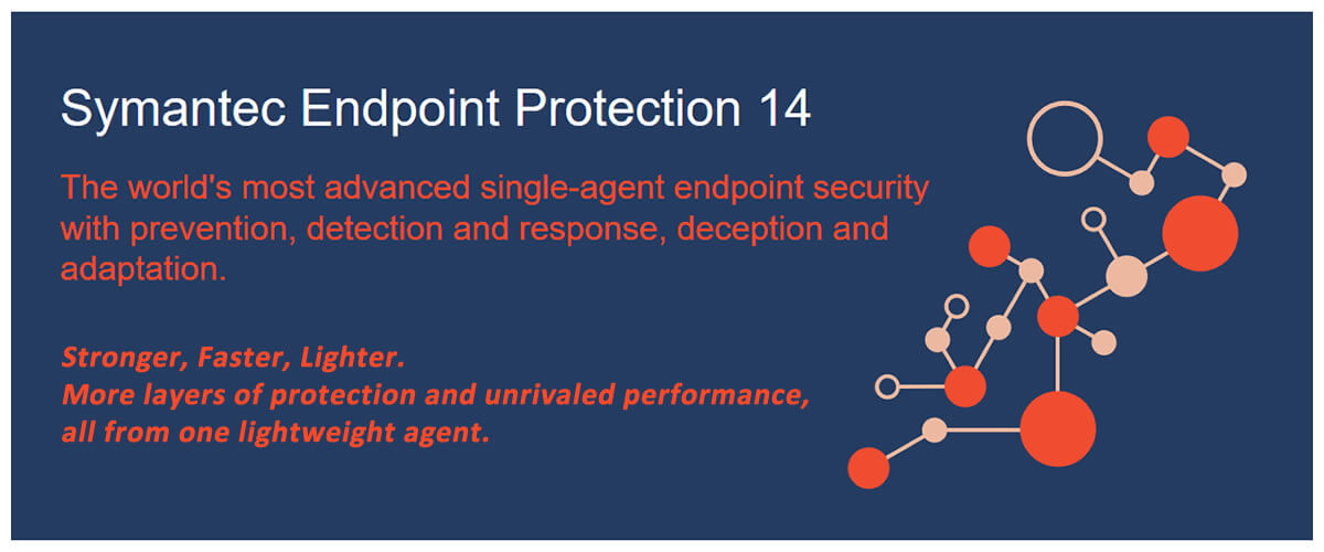 Symantec Endpoint Protection delivers superior, multilayer protection to stop threats regardless of how they attack your endpoints. Symantec Endpoint Protection integrates with existing security infrastructure to provide orchestrated responses to address threats quickly. The single, lightweight Symantec Endpoint Protection agent offers high performance without compromising end-user productivity, so that you can focus on your business.
