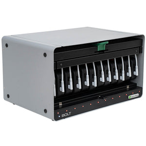The LocknCharge Bolt 12 Prewired USB-C PD Charging Station is a compact, efficient charging solution designed to store, charge, and secure up to 12 USB-C devices in classrooms, offices, labs, or shared workspaces. With pre-installed USB-C Power Delivery cables, this station delivers fast and reliable charging without the clutter of extra cords. Its vertical design saves valuable counter or floor space, while a secure locking mechanism protects devices when not in use. The Bolt 12 ensures devices are always organized, charged, and ready for use in high-traffic environments.