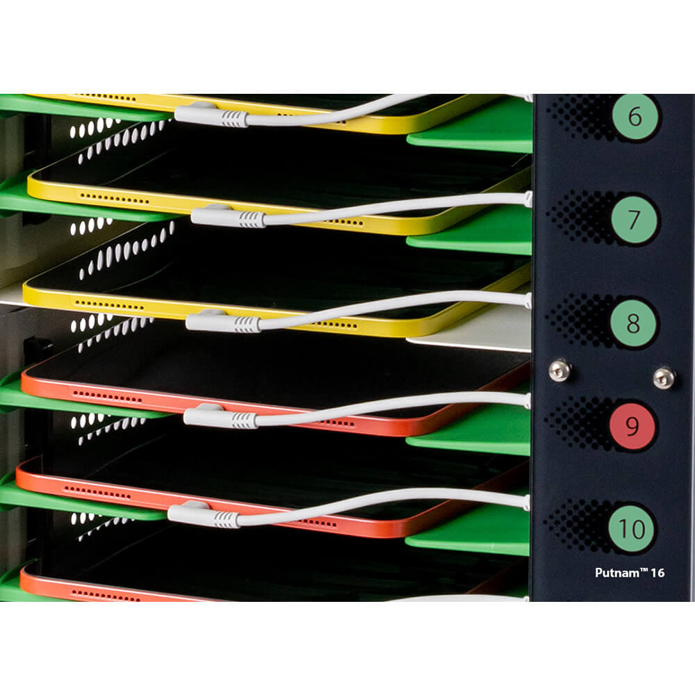 LocknCharge Putnam 16 USB-C PD Charging Station. The LocknCharge Putnam 16 is a heavy-duty multi-device charging station designed to charge, store, and secure up to sixteen USB-C devices (tablets, small Chromebooks, iPads etc.). It’s built for environments like schools, organizations, businesses, or healthcare where many mobile devices need to be kept charged, organized, and safely locked up.